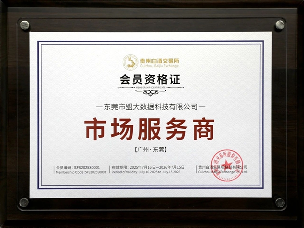 近日,贵州白酒交易所与东莞市盟大数据科技有限公司(以下简称“盟大数据”)达成战略合作,授予盟大数据“市场服务商”会员资格,并于8月26日在盟大集团举行了酒交所服务商挂牌仪式。