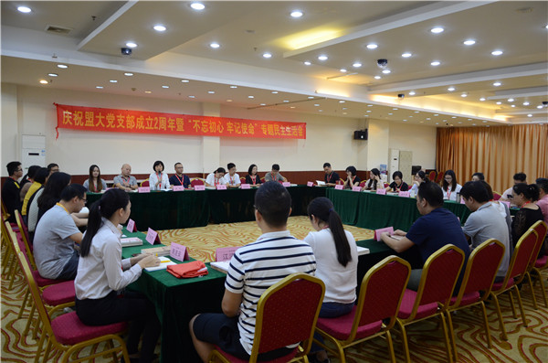 10月18日下午,盟大党支部成立2周年暨“不忘初心 牢记使命”专题民主生活会在公司三楼会议中心召开。盟大党支部书记沈双主持会议,来自公司各部门、各岗位的正式党员、预备党员和入党积极分子及储备干部代表等36人参加了民主生活会。