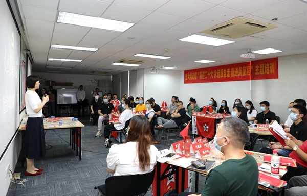 10月20日下午,在东莞盟大集团总部13楼会议室,东莞盟大集团党支部、广东唯一网络科技有限公司党支部、东莞铁塔第一党支部、广东通莞科技股份有限公司党支部、东莞市华南专利商标事务所党支部、东莞经济与城市发展研究会党支部、东莞联通产业互联网党支部、东莞市永强汽车制造有限公司党支部、东莞徐记食品有限公司党支部、广东腾东网络科技有限公司党支部等11家党支部联动学习党的二十大报告。