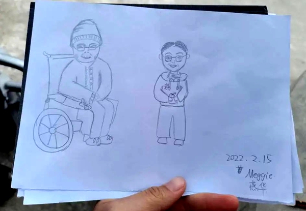林伯听完很感动,把小画挂在他床头的墙壁上。探访结束后,惊鸿给林伯打电话,电话那头传来了老人家欣喜的声音,“从来没有人打电话给我,你还记挂我这个糟老头……”