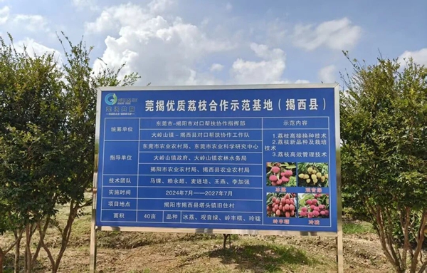 早在2021年,东莞驻市帮扶团队和东莞市农业农村局联合统筹社会捐赠资金和技术力量,在揭阳惠来县周田镇、葵潭镇、神泉镇、鳌江镇、溪西镇开展120亩优质荔枝嫁接改造试点项目,把东莞的优质荔枝品种嫁接到惠来,两地荔枝实现资源优势互补。