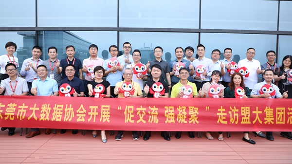 8月18日下午,东莞市大数据协会“促交流、强凝聚”参观交流团走进盟大集团,参观团由东莞市大数据协会会长詹若山率队,秘书长田爱军、培训中心主任罗艳,以及协会各企业家代表一行20余人参加了交流活动。